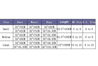 Taglie: S (US4 - - 6), M (US6 - 8), L (US8 - 10) se non siete sicuri circa il vostro formato, controllare la tabella di formato si prega