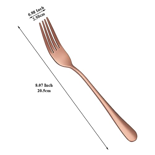 Evanda Forchetta da tavola in oro rosa 12 pezzi 20,5cm in acciaio inossidabile placcato oro rosa, posate forchette e cucchiai, cucchiai e forchette, facili da pulire, lavabili in lavastoviglie