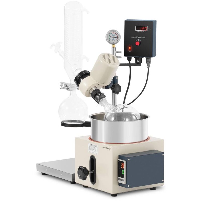 Distillatore da laboratorio SBS-RV-2000 L'evaporatore rotante da laboratorio SBS-RV-2000 della Steinberg Systems è il dispositivo perfetto per la distillazione! Elabora grandi quantità in modo rapido e preciso e per risultati professionali! Grazie al potente motore, il distillatore lavora in modo preciso e uniforme. La stazione di distillazione perfetta per il tuo laboratorio! L'evaporatore rotante dispone di una vaschetta da 5 l e un pallone rotante da 5 l. Il pallone di raccolta ha una capacità di 1 l. Il distillatore ha una velocità di rotazione di 120 giri al minuto. La temperatura può essere regolata esattamente in un intervallo di 0-99 °C per garantire la temperatura di evaporazione ottimale del liquido. La precisione assoluta della rotazione e della temperatura assicura una vaporizzazione uniforme e risultati ottimali. Dettagli tecnici Pallone rotante 5 l Pallone di raccolta 1 l Rotazione 120 giri/min Potenza 40 W Contenuto della spedizione Evaporatore rotante da laboratorio