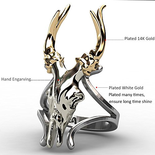 EVBEA - Anello in metallo, con teschio di cervo, in stile vintage, inciso, per uomini e donne, anello corno grande, 22, cod. R340-10
