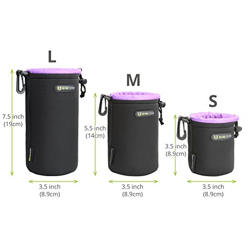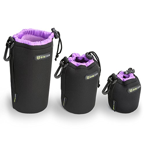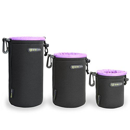 Evecase Custodia per Obiettivi, Lenti Prottetive Neoprene Borsetta Custodia Porta Obiettivi per Fotocamera DSLR, Minolta, Canon, Nikon, Pentax, Sony, Olympus, Panasonic - Confezione da 3 (S/M/L)