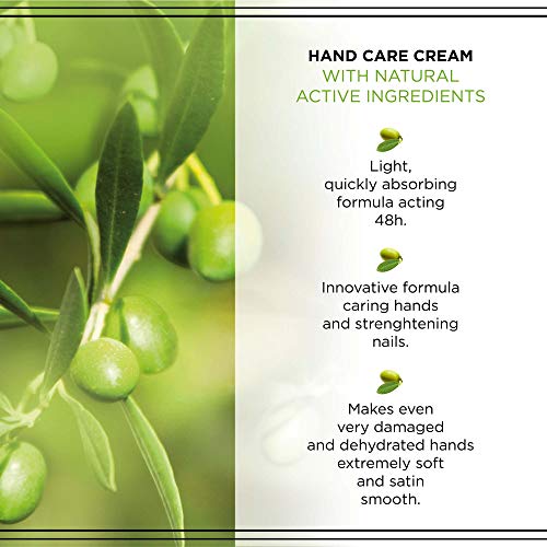 Proprietà nutrienti: l'estratto di foglie d'oliva nutre e rigenera la pelle secca e screpolata delle mani, mentre l'olio d'oliva integra i lipidi epidermici, prevenendo la perdita d'acqua.