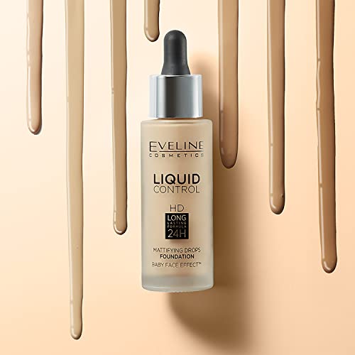 Eveline Cosmetics Liquid Control HD Fondotinta viso mat, 32 ml, 010 Light Beige