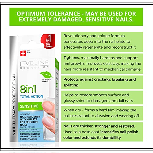 Eveline Cosmetics Sensitive 8in1 Total Action Siero Per Unghie Concentrato Balsamo + Rinforzante + Indurente Per Unghie Rotte E Sfibrate | 12 ml | Trattamento Riparatore | Facile Applicazione