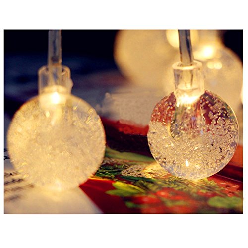 EVELTEK 50 sfera di cristallo della corda del LED accende la batteria operata, 5m / 16.4feet nel complesso lunghezza uso per abitazioni, Decorazioni cameretta, matrimonio, Natale parte illuminazione ambiente, nessuna presa necessaria. (Bianco caldo)