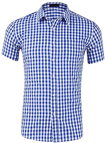 Evelure Camicie da Uomo Camicie con Maniche Scozzesi, Casual, comode e Moderne per L'Estate, Manica Corta