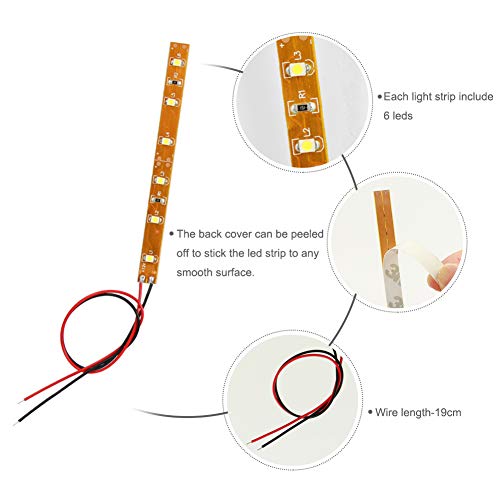 Evemodel 10pcs Precablato Bianco Caldo Striscia Led Luce Autoadesiva 12V ~ 18V 10CM DD04WM-10N-EU