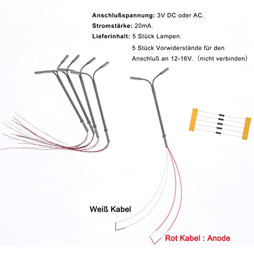 Evemodel 5 Pezzi 1:87 Modello Ferroviario Treno LED Lampada Post Luci stradali Ho Scala