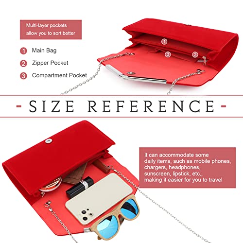 EVEOUT Pochette e Clutch da Donna Velluto Pochette da sera Borsetta a busta con catena Borsa a tracolla per Banchetto di fine