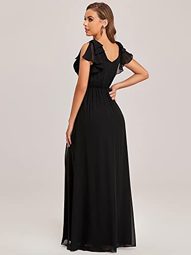 Ever-Pretty Abiti da Cerimonia Donna Chiffon Linea ad A con Volantes Maniche Corte Scollo a V Stile Impero Lungo Nero 38EU