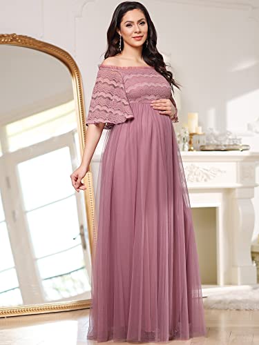 Ever-Pretty Abiti da Cerimonia Premaman dalla Spalla Mezza Manica Stile Impero Linea ad A Tulle Lunghezza del Piano da Donna Orchidea 36EU