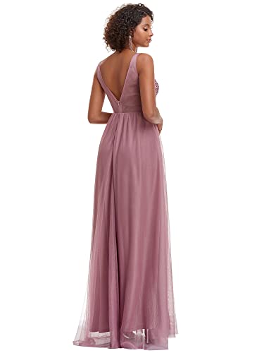 Ever-Pretty Abito da Sera Donna Linea ad A Petto Basso Scollo a V A Fiori Tulle Lungo Orchidea 38