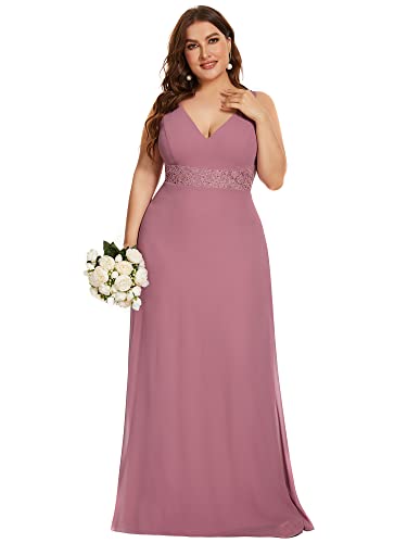 Ever-Pretty Scollo a V Cap Pizzo Senza Maniche Vita Impero Chiffon Una Linea Plus Size Abiti da Sera ES80025, Orchidea, 20