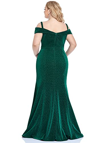 Ever-Pretty Vestiti da Cerimonia Taglie Forti Scollo a V dalla Spalla Bodycon Lunghezza del Piano da Donna Verde Scuro 56