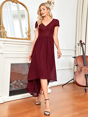 Ever-Pretty Vestiti da Sera Stile Impero Maniche Corte Scollo a V Corto Davanti Lungo Dietro Linea ad A Donna Borgogna 36EU