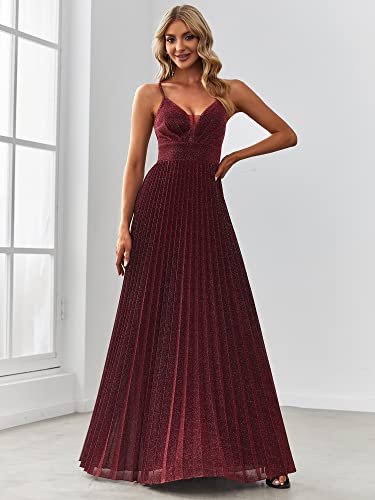 Ever-Pretty Vestito da Sera Brillantini Tracolla Non Regolabile Senza Schienale Linea ad A Pieghe Senza Maniche Abito da Sera Borgogna 36