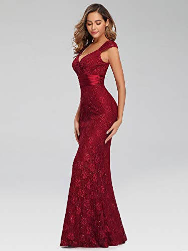 Ever-Pretty Vestito da Cerimonia Donna Sirena Senza Maniche Scollo a V Pizzo Stile Impero Lungo 07919