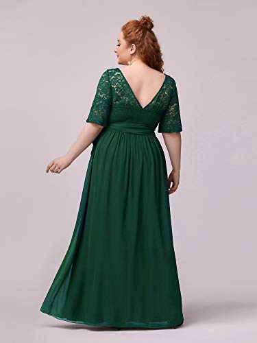 Ever-Pretty Vestito da Cerimonia Rotondo Mezza Manica Stile Impero Linea ad A Chiffon Pizzo Taglia Grossa per Donne Lungo Abito da Damigella 07624