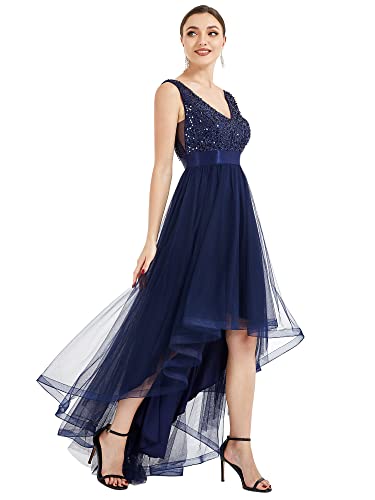 Ever-Pretty Vestito da Damigella Donna Stile Impero Linea ad A Corto Davanti Lungo Dietro Scollo a V Petto Basso Senza Maniche Abiti da Damigella Blu Navy 56EU