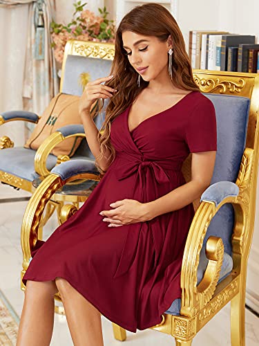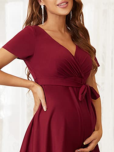 Ever-Pretty Vestito da Sera Premaman con Scollo a V Maniche Corte al Ginocchio Stile Impero Linea ad A da Donna Borgogna 48EU
