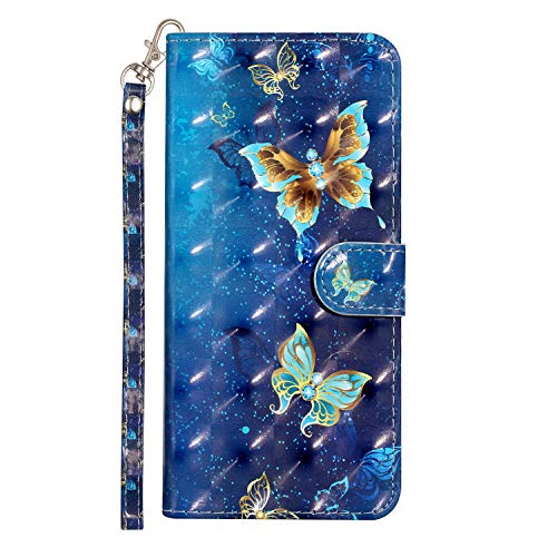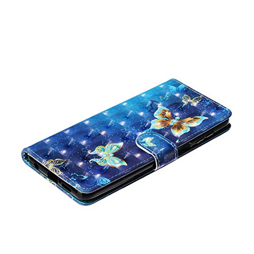 Everainy Cover Compatibile per Xiaomi Redmi Note 9 PRO/Note 9 PRO Max/Note 9S Silicone PU Pelle Portafoglio Libro con Corda 3D Glitter Flip Case Antiurto Magnetica Resistente Custodia (Farfalla Blu)