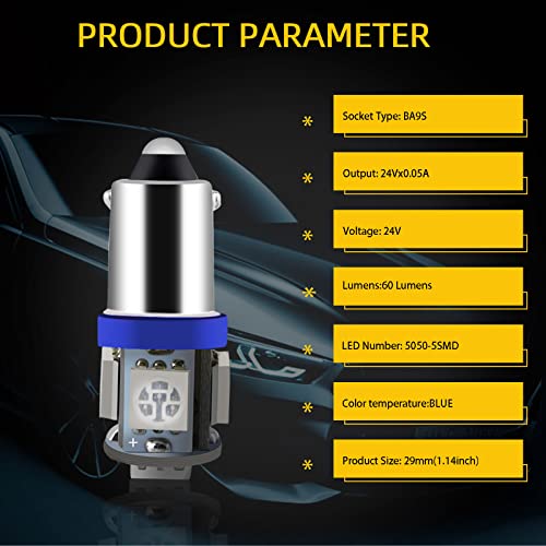 EverBrightt 20-Pack DC 24V Blu BA9S 5050 5SMD lampadine Clearance Cuneo Luce Targa Lato Bollitore per Luce LED