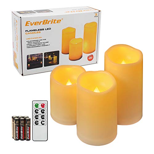 EverBrite Candele a LED Senza Fiamma 3 Pezzi (10,2 cm, 12,7 cm, 15,2 cm) con Telecomando Funzione Timer Luce Decorativa con 6 AA Batterie