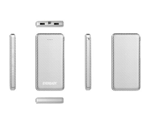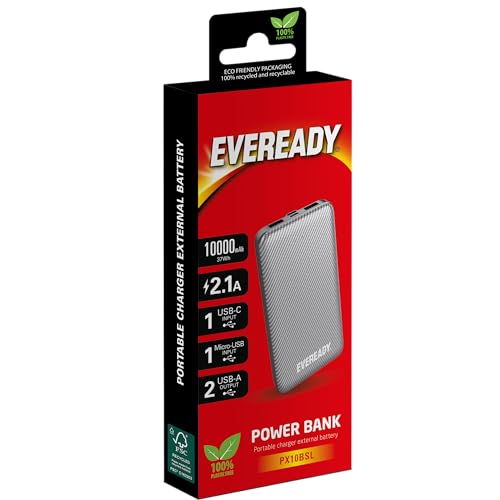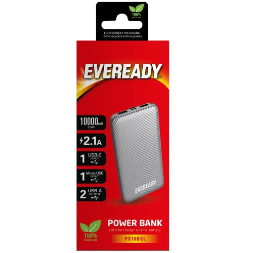 EVEREADY - Batteria esterna 1.0000 mAh + Cavo USB-A/Micro-USB, batteria esterna, colore: Argento