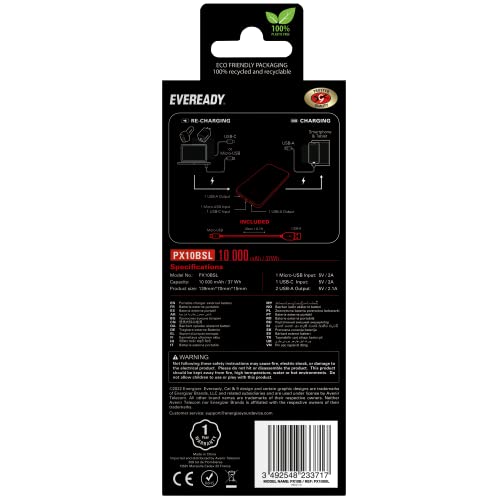 BATTERIA ESTERNA POTENTE: La batteria esterna Eveready è una power bank efficiente e compatta che puoi portare con te per ricaricare i tuoi dispositivi elettronici ovunque non ci sia accesso all'elettricità.