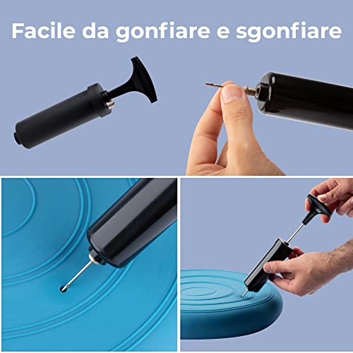 EVEREST FITNESS Cuscino ad Aria, con gonfiaggio, Diametro 33 cm, con Pompa ad Aria, Cuscino per Equilibrio, Cuscino per Allenamento, Seduta e Schienale