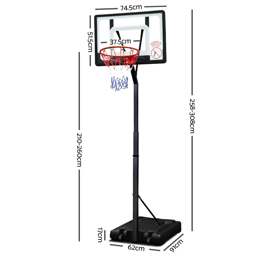 Everfit Adjustable Portable Basketball Stand Hoop System Rim Shatterproof PVC High-Tensile Steel Structure Material A2