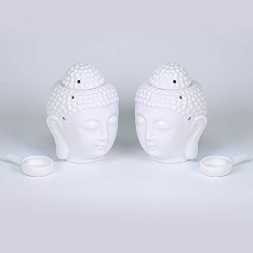 EVERGD - Set di 2 bruciatori per candele a forma di testa di Buddha, in ceramica, per aromaterapia, yoga, spa, pilates, meditazione, decorazione per la casa, idea regalo (bianco)