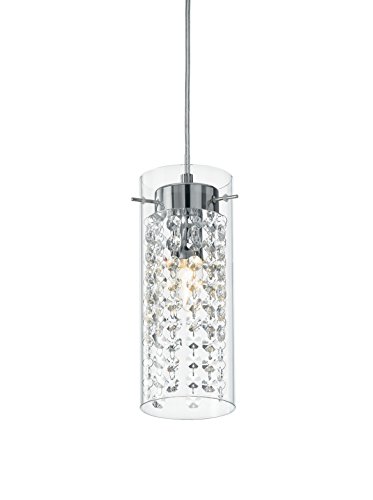 Telaio in metallo cromato. Diffusore in vetro pirex e ciondoli con ottagoni in vetro. Per lampade a sospensione, cavi e lunghezza regolabile con dispositivi di fissaggio automatici.