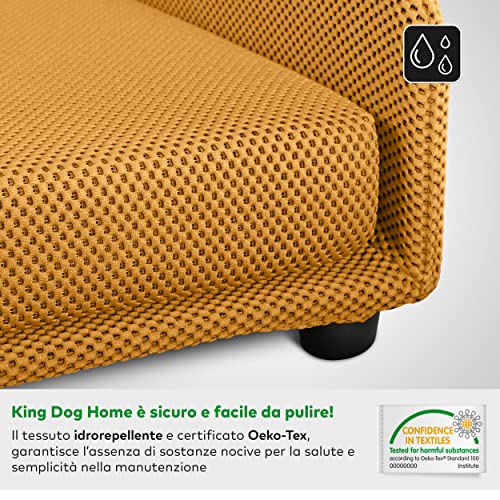DESIGN MODERNO ED ELEGANTE: Il divanetto per cane e gatti KING DOG HOME dal look moderno ma allo stesso tempo elegante, ottimo per far riposare il tuo cane come se fosse un RE. La cuccia letto ha un ha dei rinforzi su tre lati che favoriscono la sicurezza e permettono al vostro animale domestico di dormire in varie posizioni in modo flessibile. Le misure disponibili sono S (70x48 cm) L (90x68 cm) XL (120x93 cm) e i colori disponibili sono Giallo, Nero, Blu, Rosso, Grigio;