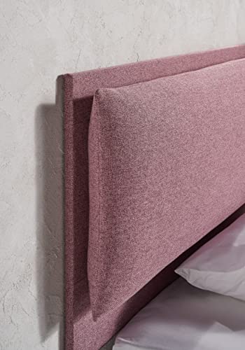 EVERGREENWEB Letto Matrimoniale 160x190cm Moderno Giroletto Imbottito Elegante Struttura in legno, tessuto Sfoderabile idrorepellente rete inclusa, Testata con cuscino imbottito color Rosso - ROMA