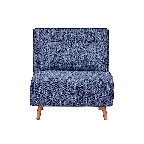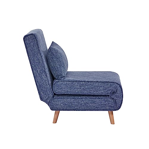 EVERGREENWEB - Poltrona Letto trasforabile | Poltrona letto relax con Materasso singolo e cuscino imbottito | Divanetto clic clac a 1 posto con gambe in legno| | Foldy (Singolo 80, Blue)