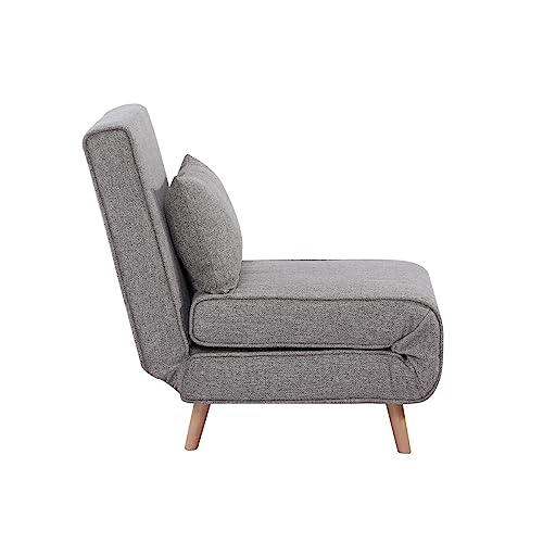 EVERGREENWEB - Poltrona Letto trasforabile | Poltrona letto relax con Materasso singolo e cuscino imbottito | Divanetto clic clac a 1 posto con gambe in legno| | Foldy (Singolo 80, Grigio Chiaro)