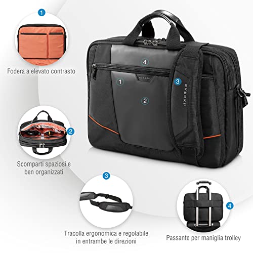 EVERKI Flight EKB419 - Borsa per Laptop da 16", Confort e Organizzazione, Design Pratico e Leggero, Ideale per Viaggi d'Affari