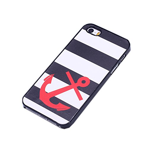 EVERMARKET(TM) Striped Sailer Red Anchor Hard Case Cover for Apple iPhone 5 5S