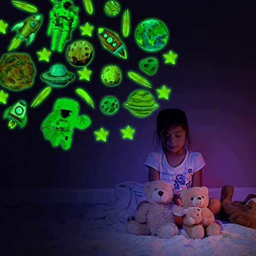 Everpertuk 113 Pz Adesivi Fluorescenti Bambini Adesivo da Parete Luminoso Universo Astronauta Meteora Astronave Luna Stelle Adesive Murali Glow in The Dark Sticker Soffitto Cameretta per Decorazione