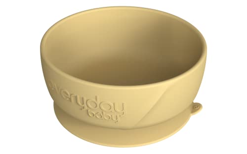 Everyday Baby 30813 0332 00 01 Ciotola con ventosa in silicone per imparare a mangiare, First Taste, a partire da 4 mesi, Adatta per lavastoviglie e microonde, Giallo tenue