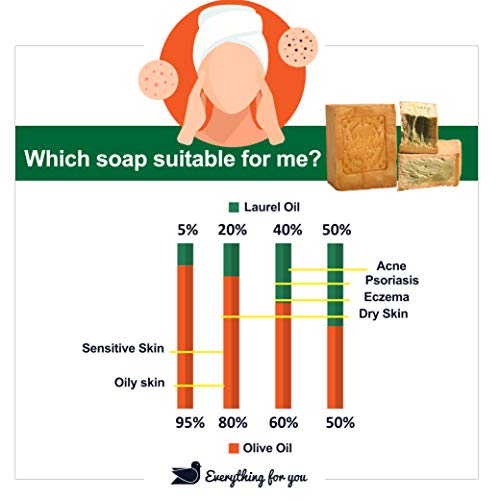 Pulizia delicata: Sapone di Aleppo è delicato sulla pelle e adatto a tutti i tipi di pelle, compresa la pelle sensibile. Deterge efficacemente la pelle senza togliere i suoi oli naturali.