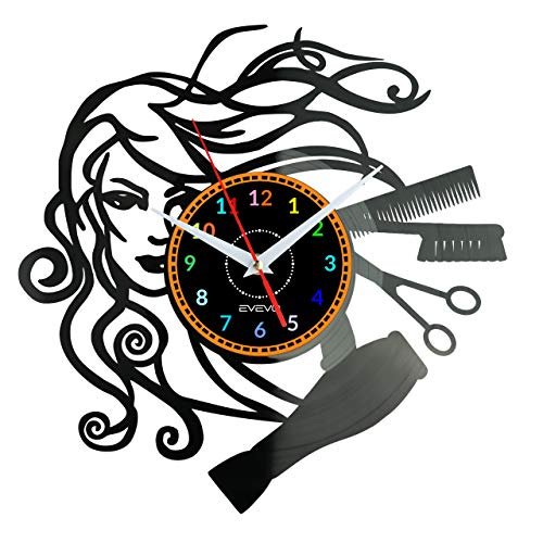 EVEVO parrucchiere Orologio Da Muro Da Parete Movimento al Quarzo Silenzioso Handmade NeroCreativo Orologio Decorativo da Parete a Muro Mechanical Art Decor Disco in Vinile parrucchiere
