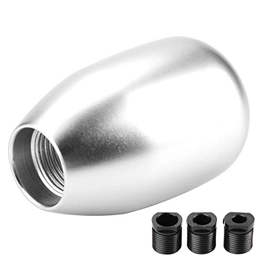 EVGATSAUTO Pomello del cambio, Manopola del cambio manuale a 5 marce Leva del cambio con 3 adattatori (8 mm/10 mm/12 mm)(Argento)