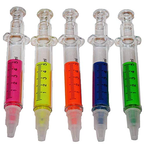 N-K Evidenziatore a forma di siringa evidenziatore, set da 5 pezzi, adatto per scrivere appunti, graffiti, pratico e popolare design e