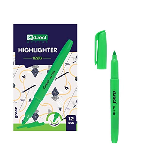 D.RECT 1226 - Evidenziatore con punta a cuneo inclinata, 12 pezzi, colore: Verde