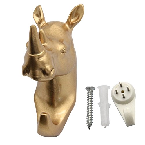 Evilandat - Appendiabiti da parete a forma di animale, con testa di rinoceronte, colore: Oro