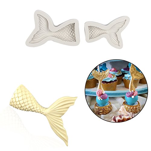 Evilandat, stampo in silicone a forma di coda di sirena per decorazione torte. Strumento per pasta di zucchero, fondant, gelatina, budino, Silicone, large