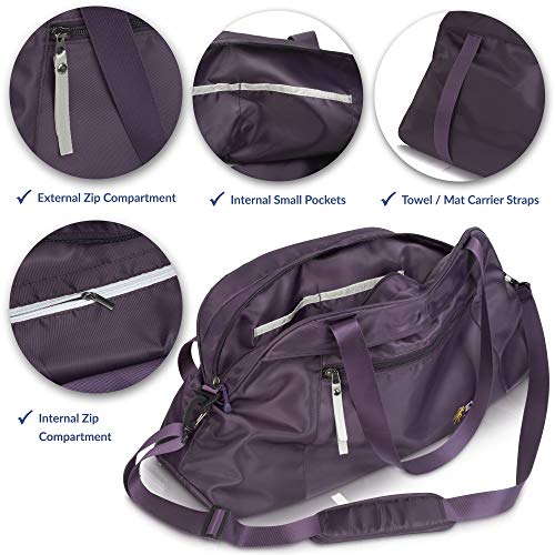 ✔ Il tuo perfetto set di borse sportive - Questo elegante set viene fornito con una borsa per tappetino da yoga viola e un grande asciugamano sportivo in microfibra.