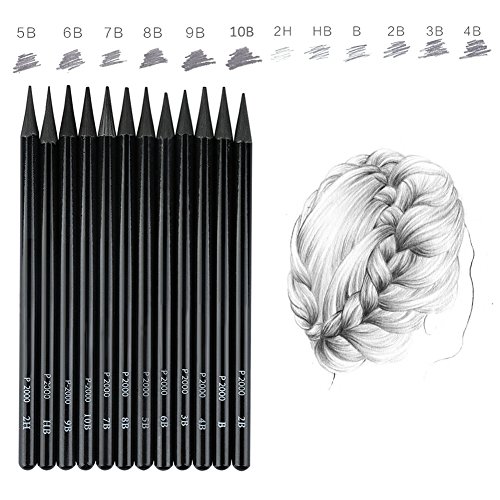 Grafite di 12 gradazioni: 2H, HB, B, 2B, 3B, 4B, 5B, 6B, 7B, 8B, 9B e 10B.